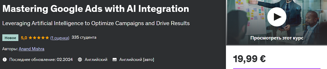 Освоение Google Рекламы с интеграцией искусственного интеллекта [Udemy] [Ананд Мишра]